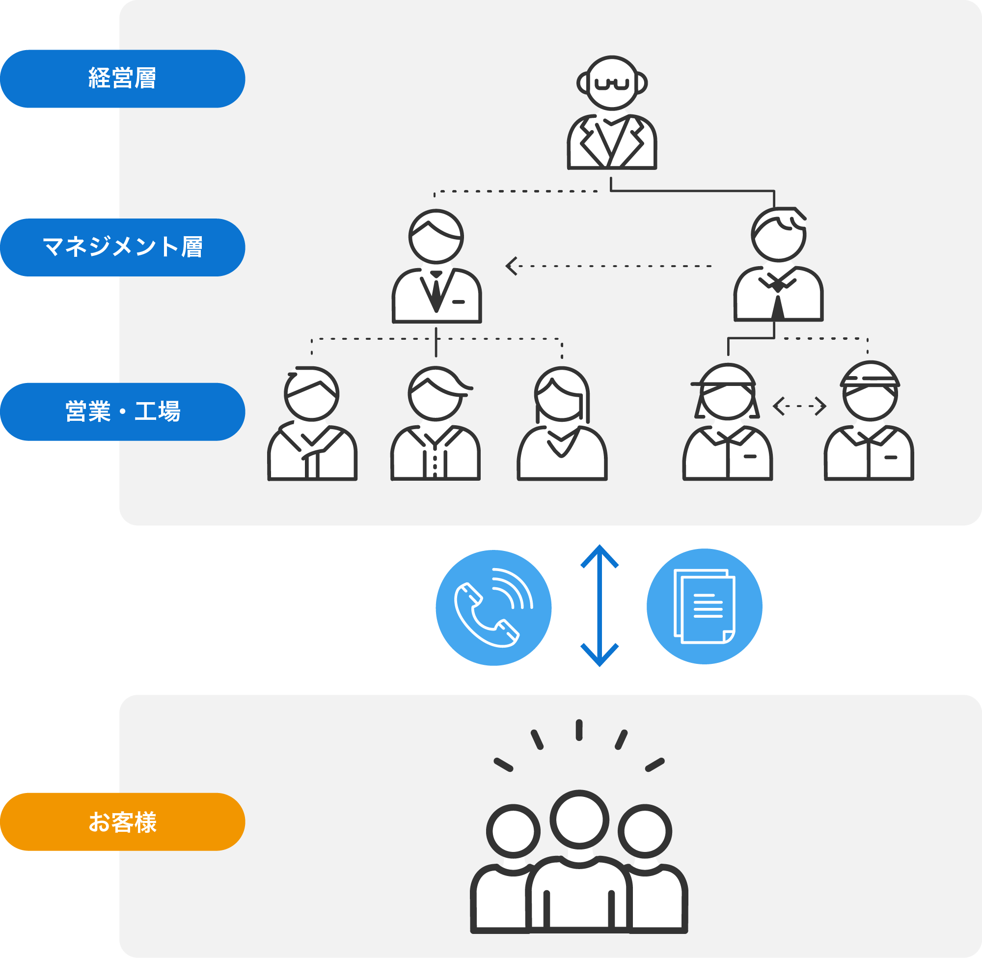 お客様の声、各拠点、各部門の経験値やアイデアが集約し、 問題解決や業務スピードの向上に貢献